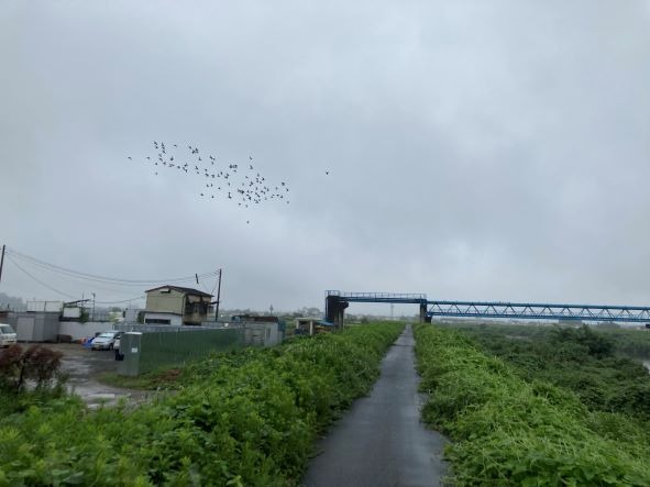 近くに鳩小屋があって、朝にぐるぐると空を旋回しています。