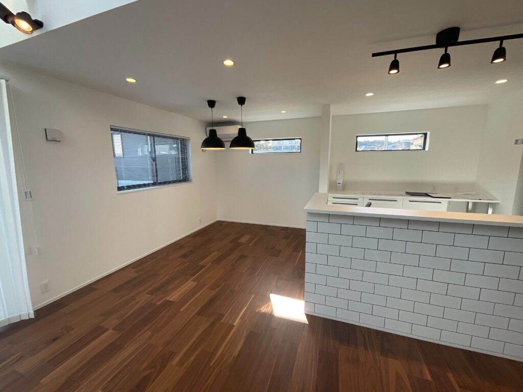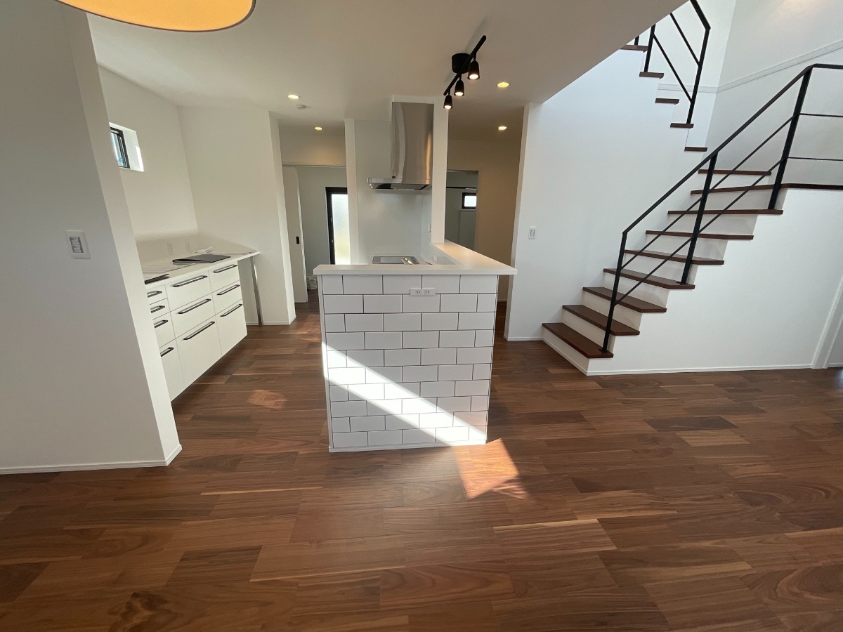 LDKは大きな窓を付けた吹き抜け、オープン階段を備え、ご家族でゆったりと過ごせる 大空間を演出しており開放感満載です。