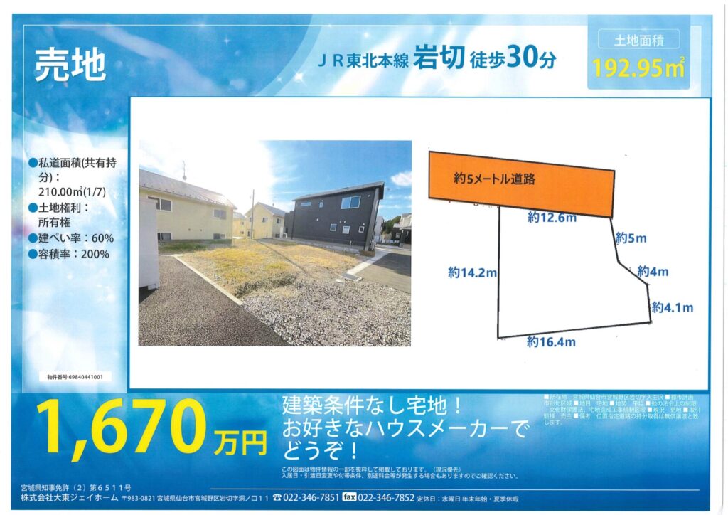 PROPERTY LISTINGS 分譲地・物件情報 HOME 分譲地・物件情報 岩切入生沢 1670万円 2025.12.25 岩切入生沢 1670万円 価格 1670万円 敷地面積 192.95㎡ Back to List PREV NEXT 資料請求 お問い合わせ RECOMMEND おすすめの分譲地・物件情報 不動産情報 最新版 1670万円 敷地面積 192.95㎡ View More 利府化粧坂 1570万 1670万円 敷地面積 192.95㎡ View More