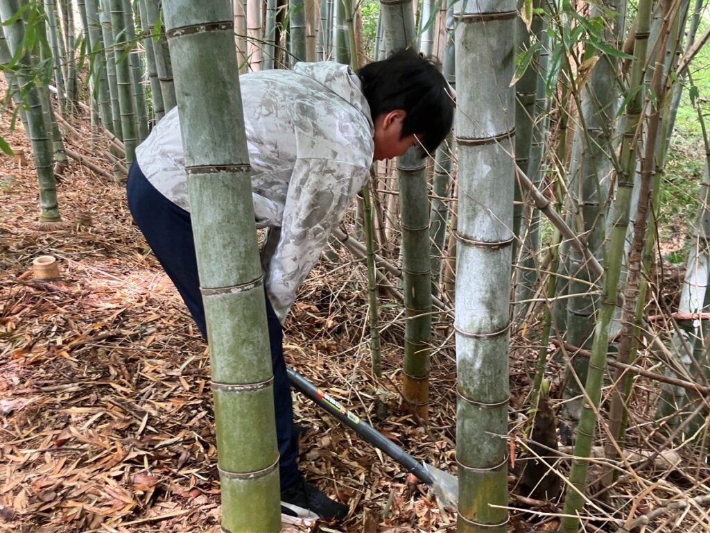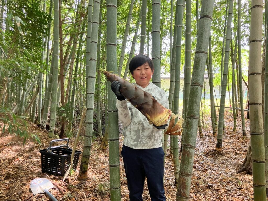 オーナーN様ご長男さっそく発見し、一生懸命にスコップで筍と格闘しております。